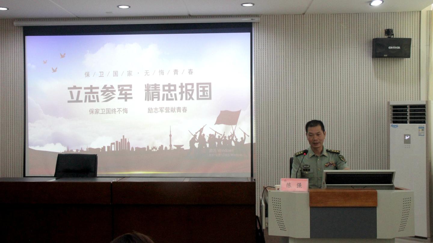 陳強以國家當前安全形勢為切入點,圍繞“國際國內(nèi)形勢復(fù)雜多變”“大國博弈競爭加劇”兩個主題進行深刻地闡述,并對大學生應(yīng)征入伍的條件、流程和相關(guān)優(yōu)惠政策進行了深度講解。他告誡同學們,富國必須強軍、強軍必先強兵,建設(shè)強大的國防是每個公民應(yīng)盡的責任與義務(wù),更是當代大學生的使命與光榮。陳強希望同學們樹立主動作為、勇于擔當?shù)呢熑我庾R,自覺把個人成長與祖國命運結(jié)合起來,做好職業(yè)生涯規(guī)劃,用青春熱血助力強軍夢想實現(xiàn)。
