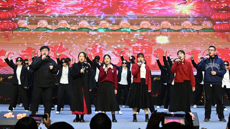 馬克思主義學院、人文學院、數(shù)計學院師生同臺,聯(lián)袂表演合唱、朗誦等節(jié)目,共話師生情誼及新年愿景。