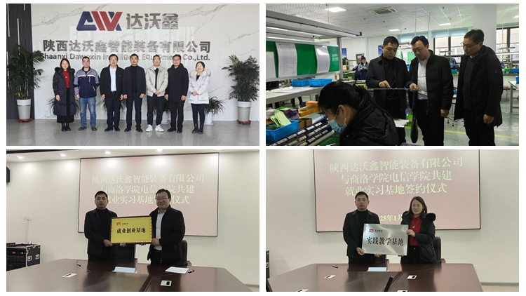1月14日,電信學(xué)院黨委書記袁訓(xùn)鋒、副書記劉征文、副院長(zhǎng)李亞文、學(xué)工辦主任陳倩一行前往陜西達(dá)沃鑫智能裝備有限公司走訪調(diào)研,參觀了解企業(yè)發(fā)展情況和精密滑臺(tái)生產(chǎn)車間工作,圍繞畢業(yè)生就業(yè)、人才培養(yǎng)、實(shí)習(xí)實(shí)踐、產(chǎn)教融合等方面內(nèi)容與企業(yè)深入交流。袁訓(xùn)鋒、李亞文分別代表學(xué)院同陜西達(dá)沃鑫智能裝備有限公司簽訂了就業(yè)創(chuàng)業(yè)基地協(xié)議、校外實(shí)踐教學(xué)基地協(xié)議并授牌。
