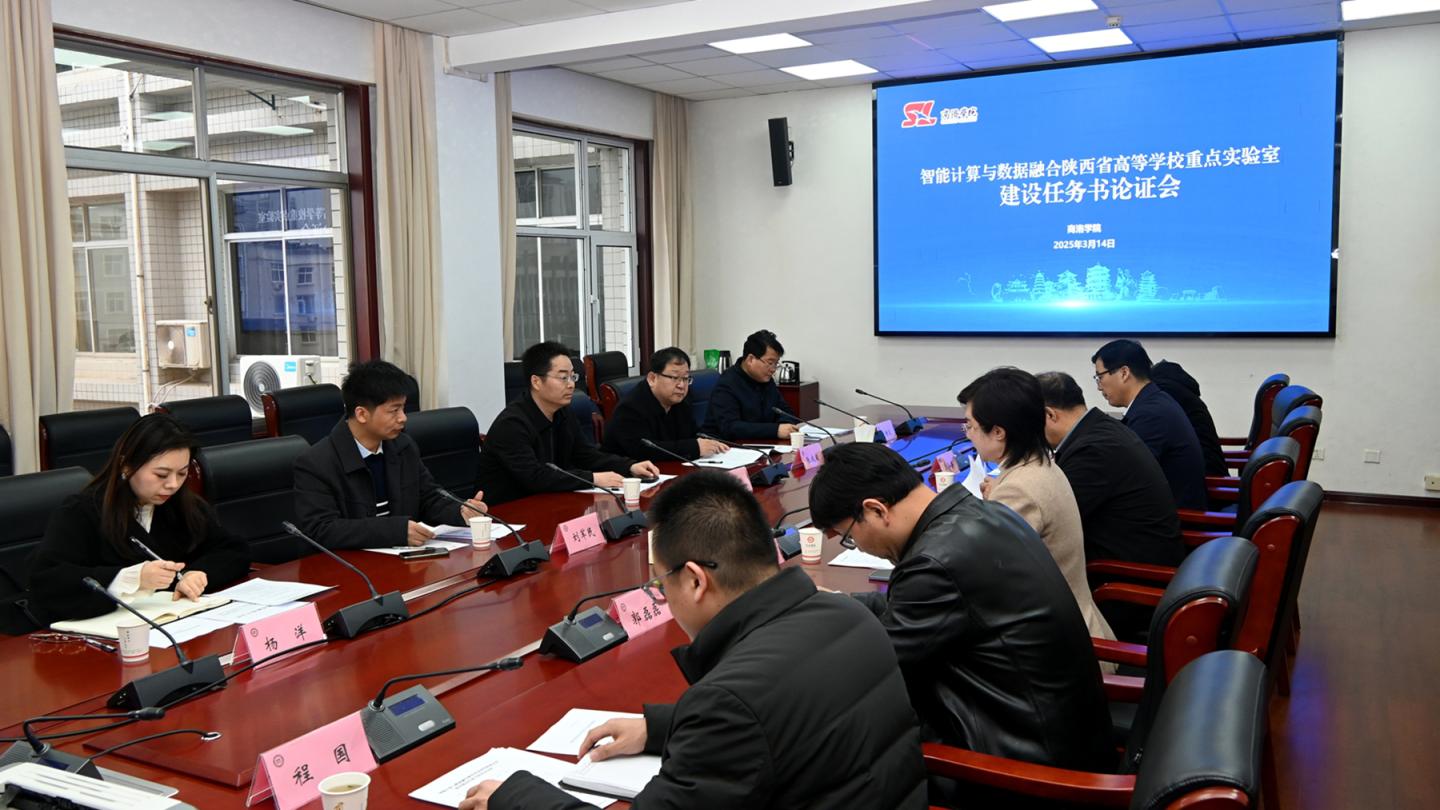 3月14日,我校召開智能計算與數(shù)據(jù)融合陜西省高等學(xué)校重點實驗室(以下簡稱“重點實驗室”)建設(shè)任務(wù)書專家論證會。以陜西科技大學(xué)數(shù)學(xué)與數(shù)據(jù)科學(xué)學(xué)院院長、二級教授李劍擔(dān)任組長的論證專家組現(xiàn)場聽取了重點實驗室建設(shè)計劃任務(wù)匯報。副校長王新軍出席會議??萍继帯?shù)計學(xué)院相關(guān)負(fù)責(zé)人及重點實驗室骨干教師參加會議。