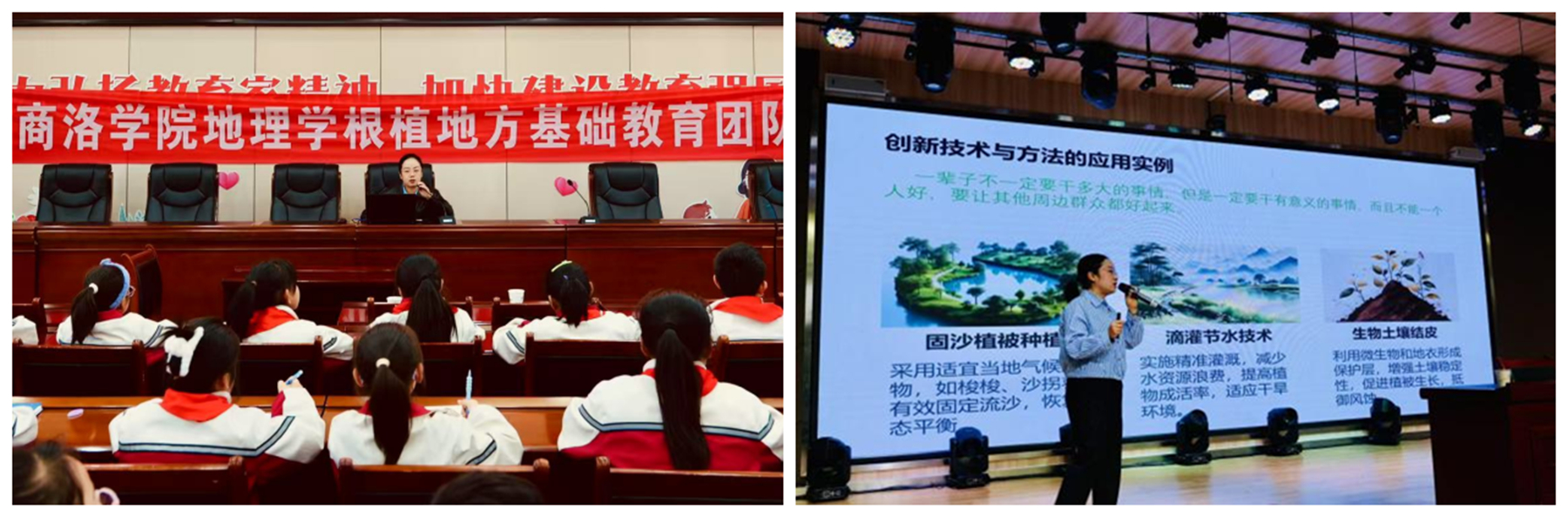 3月26日,地理科學(xué)博士房舒領(lǐng)銜的科研團(tuán)隊赴商洛市小學(xué)和商州區(qū)第六小學(xué),以“瀚海春風(fēng)——石光銀的綠色希望之旅”為題,為兩校師生帶來一堂別開生面的生態(tài)文明實(shí)踐課。團(tuán)隊通過豐富的圖片資料和生動的講解,向?qū)W生們展示了石光銀帶領(lǐng)村民治沙的艱辛歷程與感人事跡。同時,團(tuán)隊向參會師生介紹了本團(tuán)隊成員的科研成果及應(yīng)用案例,激勵廣大師生投身環(huán)保事業(yè),共同守護(hù)地球家園。