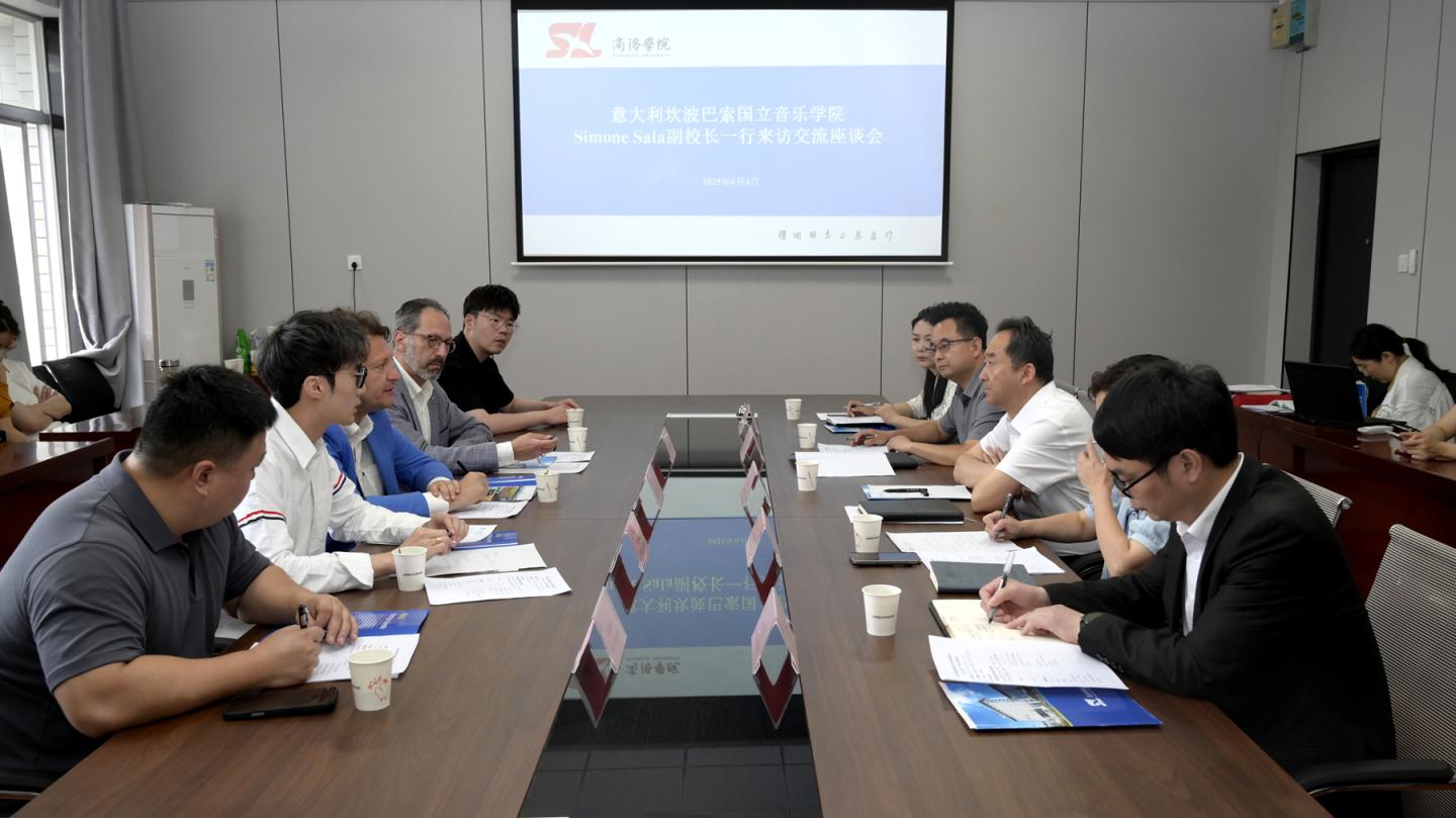 6月4日,意大利坎波巴索國立音樂學院副校長、鋼琴家西蒙尼·薩拉教授,聲樂系主任、男中音歌唱家朱塞佩·阿爾托馬雷教授等一行5人來校訪問交流。副校長張向東接待會見代表團,雙方圍繞學生短期交流、學歷層次提升、教師互訪研修等內容進行了座談交流。