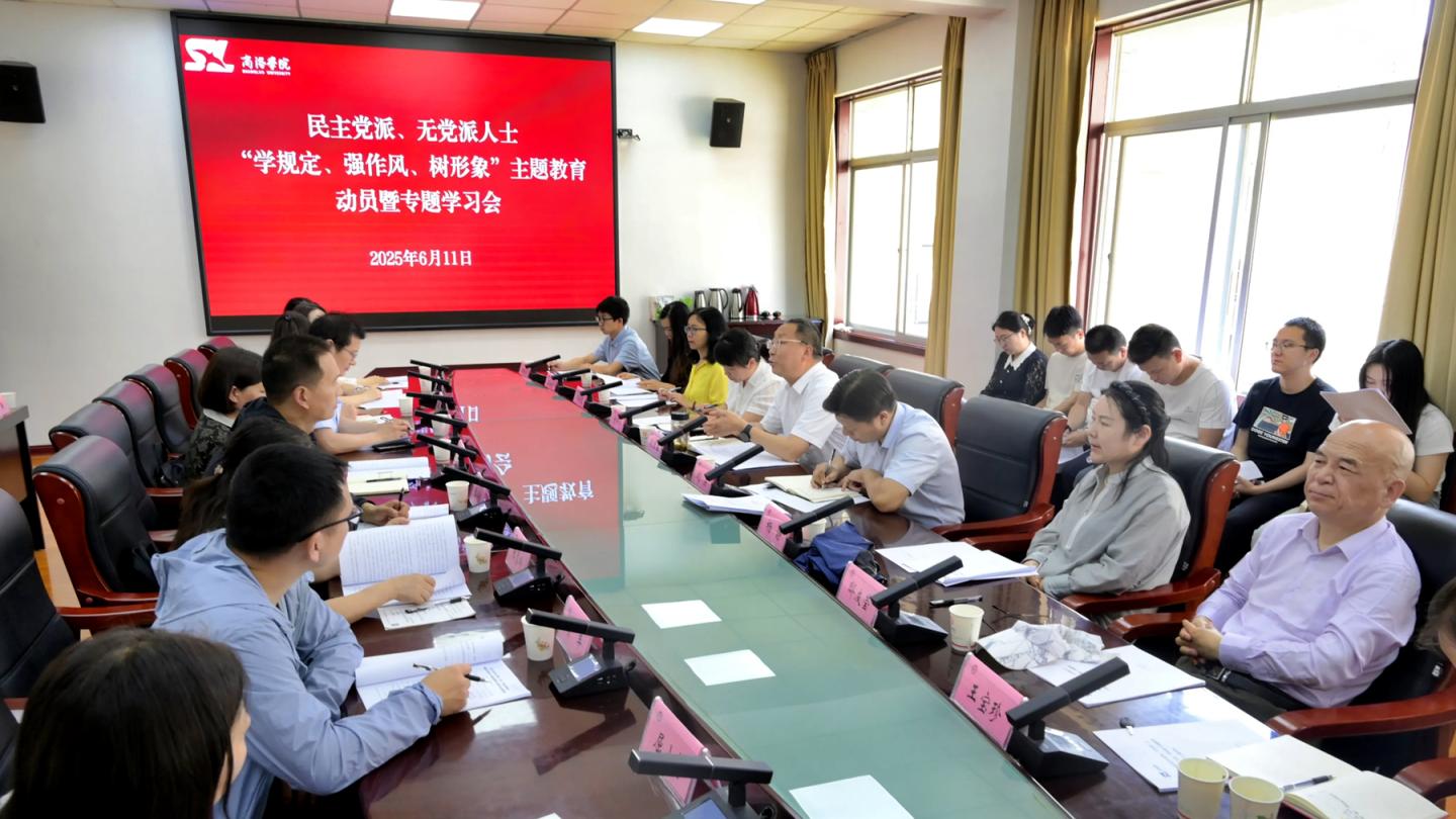 會議傳達了黨中央、省委教育工委以及市委統(tǒng)戰(zhàn)部關于支持各民主黨派、無黨派人士開展“學規(guī)定、強作風、樹形象”主題教育的有關精神,集體學習了《各民主黨派中央關于組織處理工作座談會紀要》,并對學校民主黨派、無黨派人士開展主題教育作出了安排部署。與會人員集體觀看了警示教育片,圍繞主題教育作了交流發(fā)言。