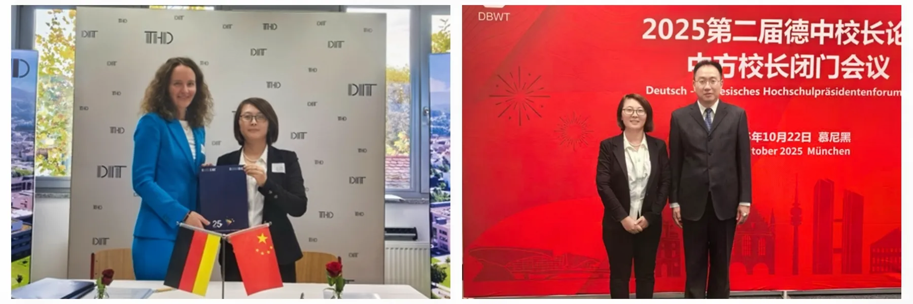 10月20日至23日,由教育部學(xué)校規(guī)劃建設(shè)發(fā)展中心組織,中德產(chǎn)學(xué)研用創(chuàng)新聯(lián)合體等單位共同主辦的“2025年中德校長(zhǎng)論壇”在德國(guó)舉辦。中國(guó)教育部、德國(guó)巴伐利亞州科學(xué)藝術(shù)部和中德兩國(guó)10余所應(yīng)用型高校受邀參加此次論壇。受學(xué)校委派,我?;瘜W(xué)工程與現(xiàn)代材料學(xué)院黨委書(shū)記喬成芳、健康管理學(xué)院院長(zhǎng)郭耀東參加論壇并開(kāi)展相關(guān)活動(dòng)。
