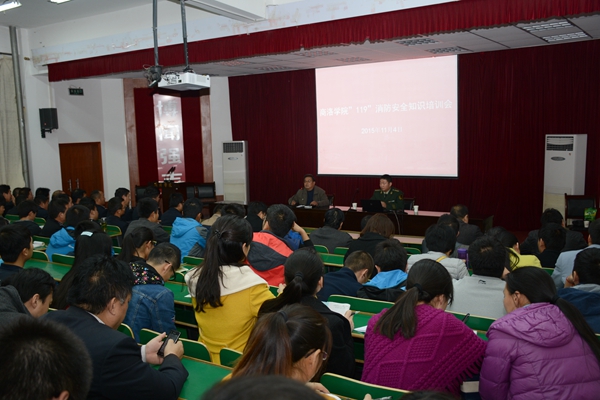 保衛(wèi)處副處長房喜峰主持培訓會,校內各單位消防安全員、實驗員、消防控制室工作人員、機房管理員、公寓樓層服務員、食堂經理及安全管理人員、輔導員、2015級各班安全委員或班長、校衛(wèi)隊員和學生護校隊員等230多人參加了培訓。