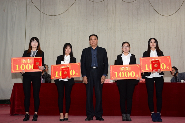 在熱烈的掌聲中,石啟英、李繼高、楊建峰、劉勇分別為獲獎(jiǎng)的指導(dǎo)教師與學(xué)生頒發(fā)證書和獎(jiǎng)金。