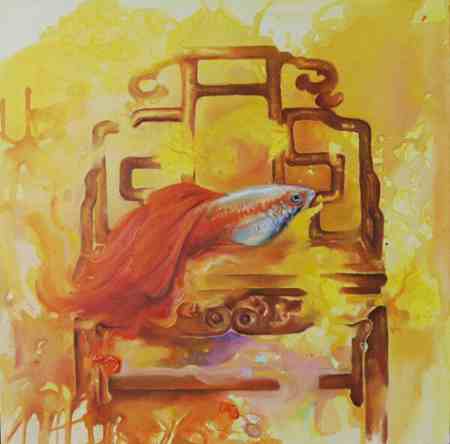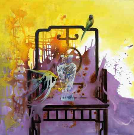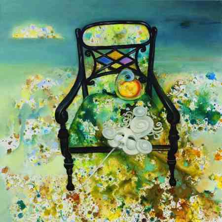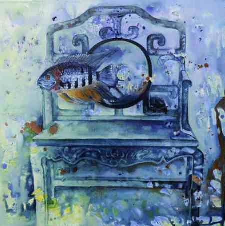 楊靜的作品兼具油畫的西方特質(zhì)與藝術(shù)家個人的東方屬性,多以意象風景為主,魚、飛鳥、椅子、面具、鮮花常常成為畫面中的主要視覺符號,意象化的表述方式是其繪畫語言特點,獨具視覺張力的畫面背后蘊藏著或浪漫或神秘或抒情的藝術(shù)獨白。《飛翔的魚》系列作品承載著對“自然”“生命”“自由”的渴望與理想,“飛翔的魚”穿梭于人間百象,描繪著在經(jīng)歷世事滄桑之后一顆滿懷“游”“逸”的心。作品把中國傳統(tǒng)文化中對莊子美學的研究與領(lǐng)悟融入到西方油畫的創(chuàng)新當中,在中西文化的對撞中融匯出的獨特浪漫氣質(zhì)是楊靜油畫藝術(shù)走出國門并被認可的實質(zhì)。