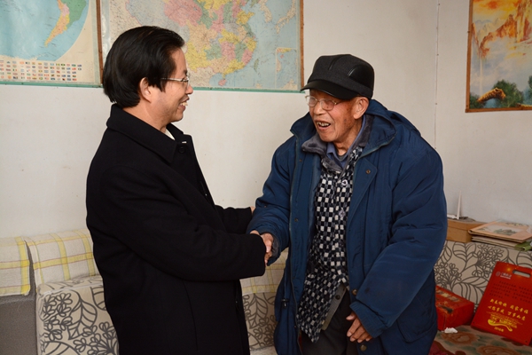 在孫玉峰老人家里,周樹紅詳細(xì)詢問老人的身體和家庭情況,以及生活上需要組織幫助解決的問題,對他為新中國教育事業(yè)做出的貢獻(xiàn)表示感謝,祝福他新年快樂、幸福安康,并叮囑他保重身體。