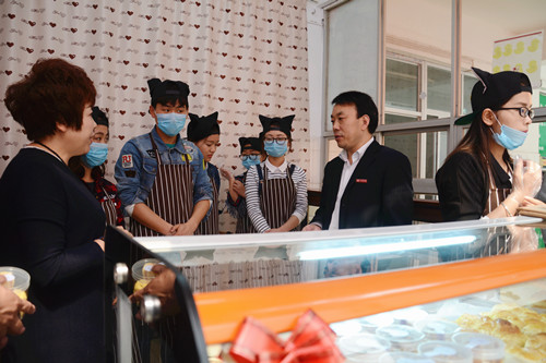 彭虎軍、金淑霞走進(jìn)“哈尼烘焙”屋與師生交流,參觀制作流程,詢問項(xiàng)目運(yùn)營(yíng)情況,并鼓勵(lì)團(tuán)隊(duì)成員積極探索、勇于創(chuàng)新。教務(wù)處、學(xué)生處、招生就業(yè)處、校團(tuán)委、保衛(wèi)處、后勤保障處、生物醫(yī)藥與食品工程學(xué)院等單位相關(guān)負(fù)責(zé)人及“哈尼烘焙”屋創(chuàng)業(yè)團(tuán)隊(duì)成員共同見證“哈尼烘焙”屋揭牌。