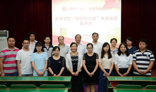 為了慶祝中國共產(chǎn)黨成立95周年,扎實推進“兩學一做”學習教育,樹立全體黨員的標桿意識,充分發(fā)揮身邊優(yōu)秀黨員的示范作用,6月29日,文傳學院黨總支召開“榜樣的力量”——優(yōu)秀黨員宣講會。4名優(yōu)秀教工黨員和7名優(yōu)秀學生黨員分別宣講了自己的先進事跡。