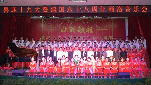 9月28日晚,由陜西省文學(xué)藝術(shù)界聯(lián)合會、中共商洛市委宣傳部、商洛市文學(xué)藝術(shù)界聯(lián)合會主辦,我校藝術(shù)學(xué)院、商洛市音樂家協(xié)會承辦的,以“壯麗航程”為主題的喜迎十九大暨建國68周年商洛音樂會在我校大學(xué)生活動(dòng)中心上演。校領(lǐng)導(dǎo)龍治剛、王思懷、魏書堂、劉寶盈,省文聯(lián)組聯(lián)部副主任趙光遠(yuǎn)、趙長川,商洛市政協(xié)副秘書長楊平安、郭毅,商洛市委宣傳部副部長、市文明辦主任李丹峰,商洛市人大常委會教科文衛(wèi)工委主任郭菊賢,商洛日報(bào)社副總編輯趙有良,商洛市文廣新局副局長王勁,市文聯(lián)黨組書記王良、專職副主席李志華,商洛市音樂家協(xié)會主席林宏彥、市青年作協(xié)主席馮玲子同商洛市音樂屆人士、我校處級領(lǐng)導(dǎo)干部、師生代表一同觀看了晚會。