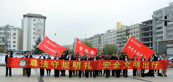 為倡導廣大市民文明、有序、安全出行,營造和諧文明的交通環(huán)境。12月2日,商洛市公安局交通警察支隊組織開展了以“遵法守規(guī)明禮 安全文明出行”為主題的2017年全國交通安全日宣傳活動。我校團委積極組織近百名志愿者參加本次活動。商洛市公安局交警支隊支隊長樊永生為我校文明交通志愿服務隊授旗。