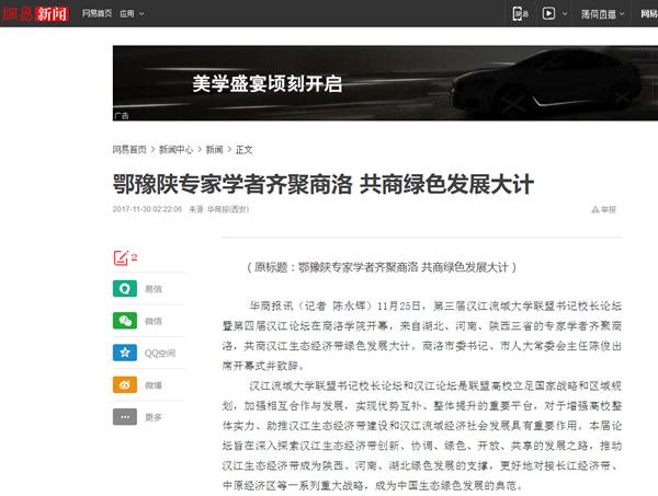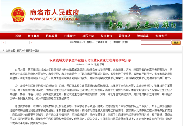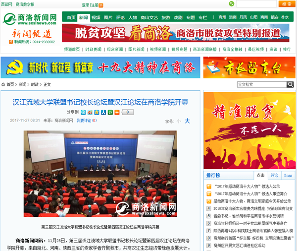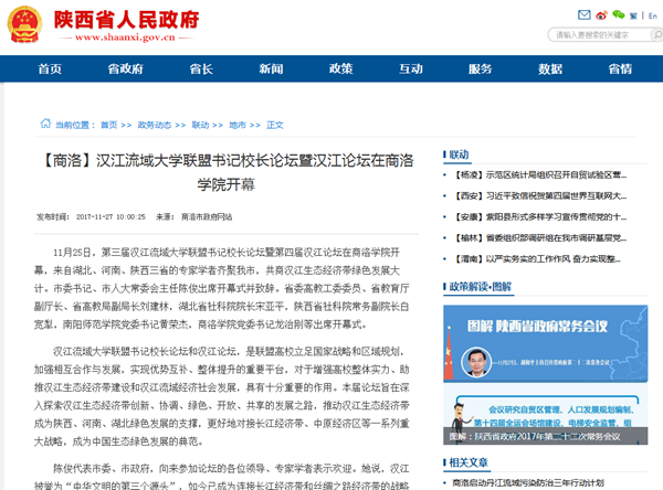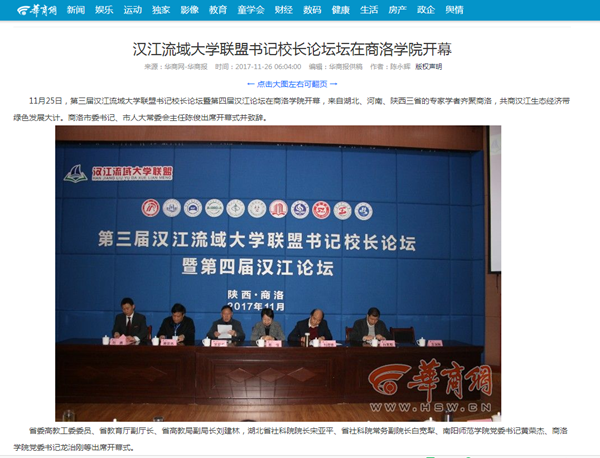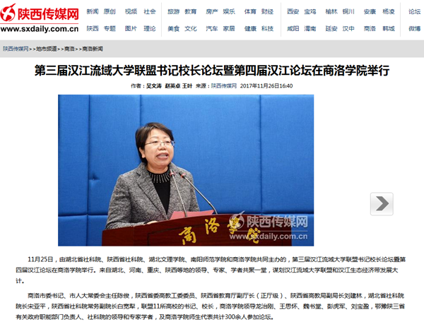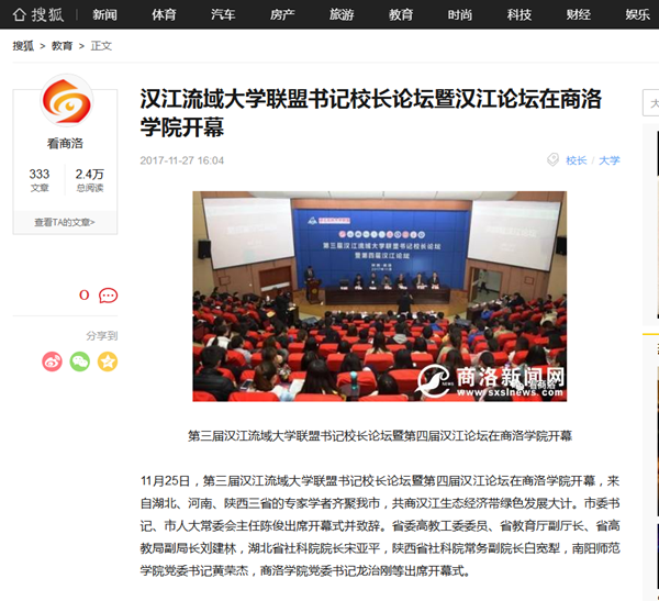 近日,網(wǎng)易、搜狐、中國社會科學(xué)網(wǎng)、陜西省人民政府網(wǎng)、陜西傳媒網(wǎng)、陜西電視臺、華商網(wǎng)、商洛市人民政府網(wǎng)、商洛日報、商洛新聞網(wǎng)、聯(lián)盟各單位網(wǎng)站等國家及地方主流資訊平臺,紛紛聚焦報道第三屆漢江流域大學(xué)聯(lián)盟書記校長論壇暨第四屆漢江論壇在我校的舉辦盛況,引起了社會各界對漢江生態(tài)經(jīng)濟(jì)帶及漢江流域大學(xué)聯(lián)盟高校的更多關(guān)注,獲得了眾多網(wǎng)友為商洛學(xué)院紛紛點贊。