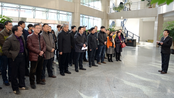 彭虎軍代表學(xué)校黨委對(duì)圖書館微信公眾平臺(tái)開通表示祝賀,向推動(dòng)圖書館服務(wù)創(chuàng)新與發(fā)展而默默奉獻(xiàn)的全體館員表示感謝。對(duì)于進(jìn)一步做好圖書館工作,他從深化服務(wù)意識(shí)、充分發(fā)揮微信公眾平臺(tái)作用、堅(jiān)持不懈加強(qiáng)圖書館內(nèi)涵建設(shè)等三方面提出了殷切希望和具體要求。