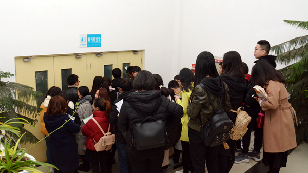 勤奮的莘莘學(xué)子早早到來(lái),等候圖書(shū)館開(kāi)放。