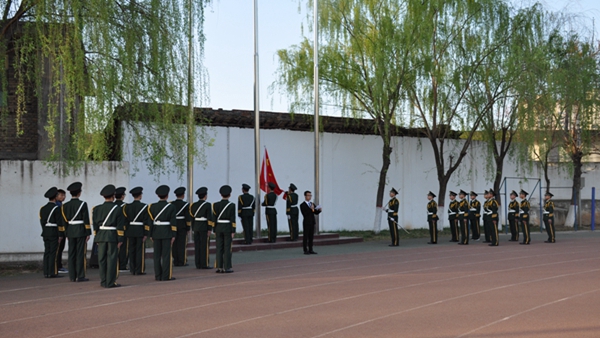 7點(diǎn)10分,在全體師生的注目下,國(guó)旗護(hù)衛(wèi)隊(duì)護(hù)送鮮艷的五星紅旗進(jìn)場(chǎng),伴隨著雄壯的國(guó)歌,五星紅旗冉冉升起,全體師生神情肅穆,齊唱國(guó)歌,向莊嚴(yán)的國(guó)旗表達(dá)著最崇高的敬意。