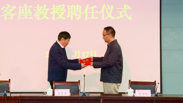 龍治剛為韓魯華頒發(fā)聘書并發(fā)表講話。他表示,韓教授是賈平凹研究方面的知名專家,兼具廣泛的學(xué)術(shù)影響力和厚重的人文品質(zhì),他的加入將為我校賈平凹研究注入強(qiáng)大動(dòng)力,為我校組建相關(guān)領(lǐng)域研究團(tuán)隊(duì)帶來有力指導(dǎo),為我校人文社科研究實(shí)現(xiàn)重大突破提供強(qiáng)力推動(dòng)。他指出,我校的可持續(xù)、內(nèi)涵式發(fā)展離不開科學(xué)與人文兩駕馬車的共同拉動(dòng),人文學(xué)科的發(fā)展繁榮能為學(xué)校事業(yè)發(fā)展帶來精神內(nèi)驅(qū)力,大學(xué)精神的傳承更需要人文社科提供有力支撐。他相信在韓教授的帶領(lǐng)下,我校人文社會(huì)科學(xué)研究必將更上層樓、碩果累累。
