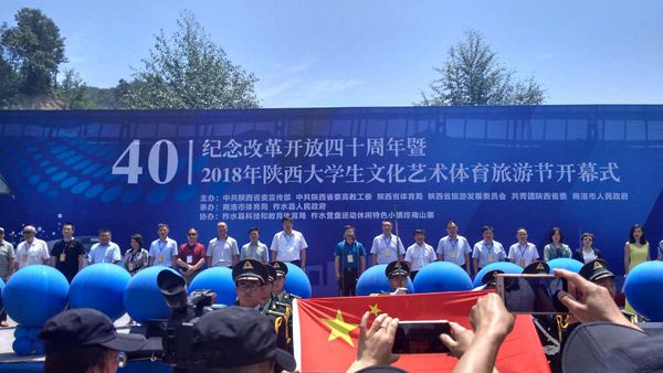 6月23日,為慶祝改革開放40周年,2018年陜西大學生文化藝術(shù)體育旅游節(jié)開幕式在柞水縣營盤鎮(zhèn)終南山寨舉行,中共陜西省委高教工委副書記李智軍、陜西省體育局副局長鄒軍、陜西省旅游發(fā)展委員會副主任陳夢榆、共青團陜西省委副書記魯鎮(zhèn)等省市領(lǐng)導出席開幕式。開幕式由商洛市委常委、副市長武文罡主持。副校長劉勇代表我校出席開幕式并上臺啟動本屆大學生文化藝術(shù)體育旅游節(jié),團委、教務處、體育教學研究部相關(guān)負責人參加。