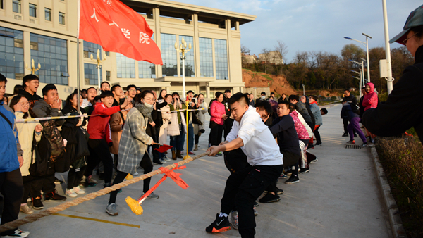 為了扎實推進“陽光體育運動”,增強集體凝聚力,根據(jù)《商洛學院2018年冬季健身活動方案》安排,11月19日至20日,我校在教學綜合樓前舉行了一場激烈的冬季拔河比賽。校黨委委員、教務處處長李超,團委、體育教學研究部等相關部門負責人參加了活動。