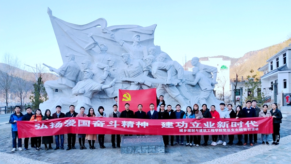 為深入學習貫徹習近平總書記關于弘揚愛國奮斗精神的重要指示,教育引導廣大黨員自覺踐行愛國奮斗精神,做新時代的奮斗者,11月17日至24日,我校機關一黨總支第二黨支部、城鄉(xiāng)規(guī)劃與建筑工程學院黨總支、機關一黨總支第三黨支部分別組織黨員開展了“弘揚愛國奮斗精神,建功立業(yè)新時代”主題黨日活動。