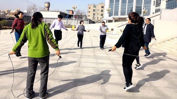 ——跳繩比賽。11月28日上午,馬克思主義學(xué)院在8號(hào)教學(xué)樓前舉辦了教職工跳繩比賽。全體在崗教職工熱情高漲、積極參賽,比賽現(xiàn)場(chǎng)氣氛熱烈,一片歡騰景象,一根根跳繩飛舞,一個(gè)個(gè)龍騰虎躍,現(xiàn)場(chǎng)不時(shí)響起歡呼聲與掌聲,伴隨跳繩擦過地面的清脆響聲,現(xiàn)場(chǎng)氣氛一次次推向高潮。