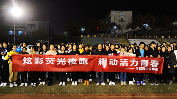 ——熒光夜跑活動(dòng)。11月26日晚,馬克思主義學(xué)院在學(xué)校操場(chǎng)舉辦以“炫彩熒光夜跑,耀動(dòng)青春活力”為主題的夜跑活動(dòng),200多名師生參加了此次活動(dòng)。活動(dòng)開始后,師生們手帶熒光環(huán)、揮舞熒光棒,在慢跑中欣賞夜色中的校園,用自己的青春和活力為校園增添靚麗風(fēng)景。夜跑結(jié)束后,大家還一起進(jìn)行了有趣的互動(dòng)游戲,在歡樂的氛圍中享受運(yùn)動(dòng)的樂趣,增進(jìn)彼此的友誼。