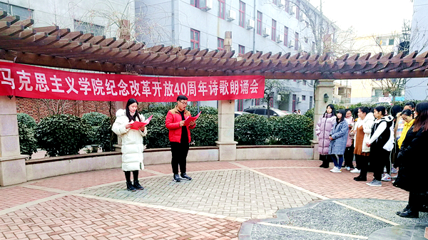 12月18日下午,馬克思主義學(xué)院在莘子苑舉辦慶祝改革開放40周年詩歌朗誦會,教師代表及在校學(xué)生200余人參加活動。