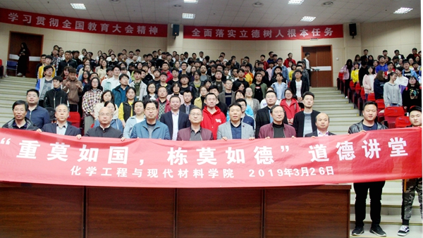 為進(jìn)一步培育和踐行社會(huì)主義核心價(jià)值觀,大力學(xué)習(xí)宣傳道德模范和身邊好人的感人事跡,增強(qiáng)大學(xué)生思想道德教育實(shí)效性,3月26日,化材學(xué)院在圖書館二樓報(bào)告廳舉辦以“重莫如國(guó) 棟莫如德”為主題的道德講堂。化材學(xué)院師生400余人參加了活動(dòng)。