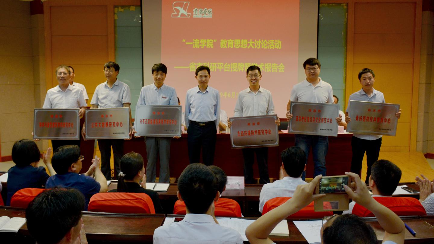 陜西省教育廳科技處處長(zhǎng)甘世平為商洛文化暨賈平凹研究中心授牌;校黨委書(shū)記龍治剛為陜西秦嶺特色生物資源產(chǎn)業(yè)技術(shù)研究院授牌;校長(zhǎng)范新會(huì)為秦嶺南麓生態(tài)環(huán)境保護(hù)研究創(chuàng)新團(tuán)隊(duì)授牌;商洛市科技局局長(zhǎng)趙緒春為商洛市生態(tài)環(huán)境技術(shù)研究中心等6個(gè)市級(jí)工程技術(shù)研究中心授牌。