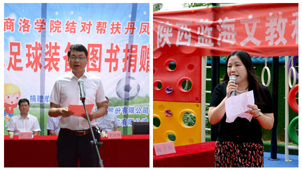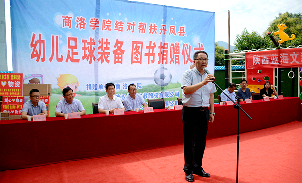 楊思飛代表丹鳳縣委、縣政府向關(guān)愛丹鳳縣幼兒教育的領(lǐng)導(dǎo)和愛心人士表示感謝,他在講話中指出,本次公益捐贈活動,是商洛學(xué)院各位領(lǐng)導(dǎo)組織開展“雙百工程”、踐行“聯(lián)幫聯(lián)扶”的具體行動,也是全社會參與大扶貧的生動體現(xiàn)。他表示,商洛學(xué)院與丹鳳縣的交流交融源遠流長,近年來在學(xué)前教育發(fā)展論壇、少兒足球培訓(xùn)、扶智扶志等方面給予了丹鳳縣有大的支持和幫助,希望學(xué)校一如既往地關(guān)注關(guān)心丹鳳的發(fā)展,持續(xù)深化戰(zhàn)略合作,對丹鳳縣教育扶貧工作給予更多更大的支持,助力丹鳳縣順利打贏脫貧攻堅戰(zhàn)。