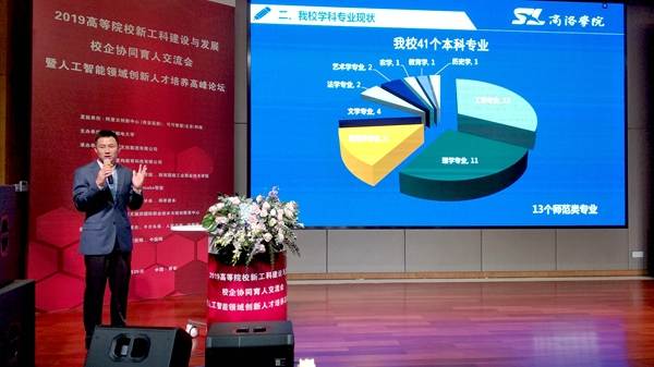 應(yīng)會議邀請,劉勇在大會上以《新工科背景下協(xié)同育人模式的探索與實踐》為題作了交流發(fā)言。發(fā)言緊密圍繞“地方高校要對區(qū)域經(jīng)濟(jì)發(fā)展和產(chǎn)業(yè)轉(zhuǎn)型升級發(fā)揮支撐作用”核心,從學(xué)科專業(yè)現(xiàn)狀、服務(wù)地方發(fā)展、對“新工科”的認(rèn)識、構(gòu)建新工科專業(yè)新結(jié)構(gòu)、協(xié)同育人模式的探索與實踐四個方面,介紹了我校近年來在“一流學(xué)院”“一流專業(yè)”建設(shè)、新工科項目建設(shè)、專業(yè)結(jié)構(gòu)調(diào)整以及創(chuàng)新創(chuàng)業(yè)教育等人才培養(yǎng)方面的做法,交流了自己對于新工科背景下高等教育發(fā)展趨勢和方向的宏觀思考,探討了建設(shè)過程中遇到的困惑和問題,獲得了與會高校代表的普遍共鳴。