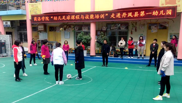 為進(jìn)一步做好結(jié)對(duì)幫扶助力丹鳳脫貧攻堅(jiān)工作,推進(jìn)丹鳳縣幼兒足球示范園建設(shè),我校與丹鳳縣科教體局于11月20日在丹鳳縣第一幼兒園共同舉辦了“幼兒足球課程與技能培訓(xùn)”活動(dòng)。我校“雙百工程”項(xiàng)目首席專(zhuān)家朱小強(qiáng),體育教學(xué)研究部足球教師楊斌,丹鳳縣農(nóng)業(yè)農(nóng)村局、科教體局相關(guān)人員,丹鳳縣5所示范園和5所民辦幼兒園負(fù)責(zé)人及相關(guān)教師參加了此次活動(dòng)。
