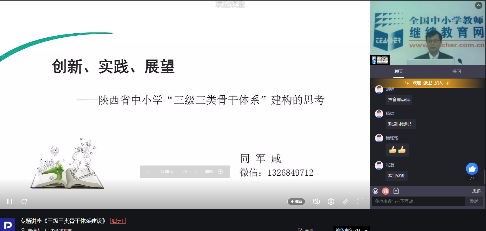 開班典禮后,沈善良為學員在線上作了《縣級培訓者團隊研修項目政策解讀》專題報告,當天下午,陜西教育科學研究所教研室主任同軍咸為學員作了題為《三級三類骨干體系建構(gòu)》的講座。