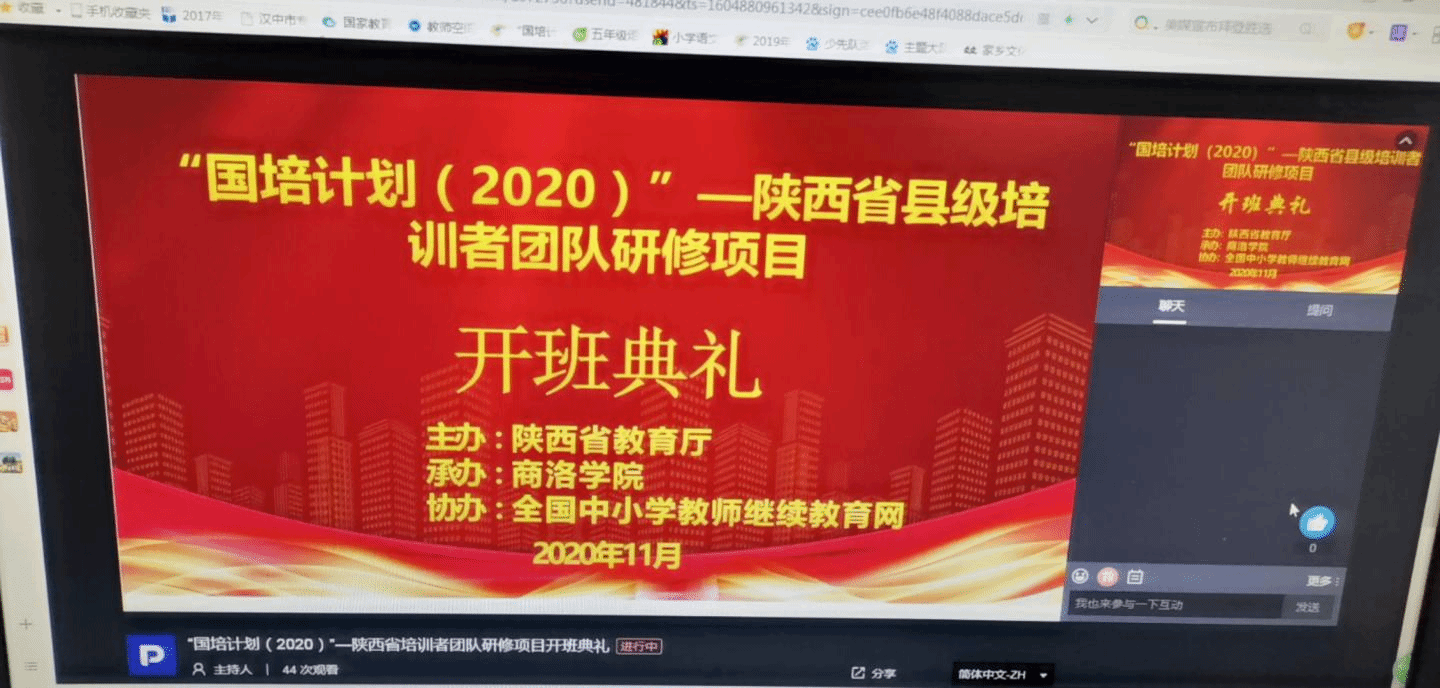 11月9日,由我校承辦、全國中小學繼續(xù)教育網(wǎng)協(xié)辦的“國培計劃2020”——陜西省勉縣教師培訓團隊研修項目舉行了線上開班典禮。