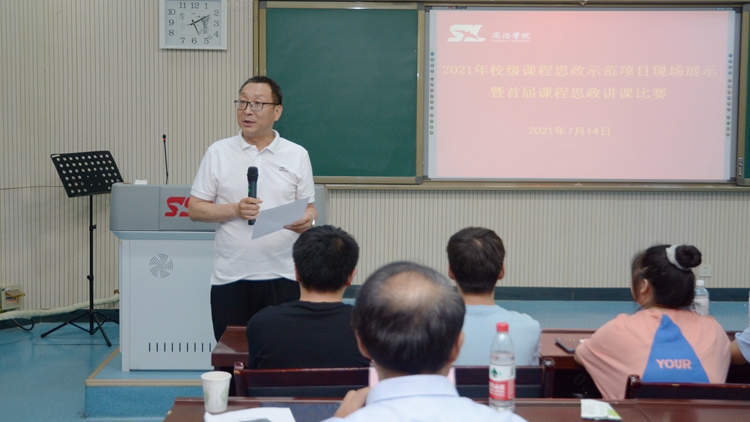 劉寶盈宣布比賽結(jié)果并做總結(jié)講話。他要求全體教師要以本次比賽為契機(jī),持續(xù)加強(qiáng)“課程思政”理論素養(yǎng),找準(zhǔn)實(shí)施“課程思政”教學(xué)的切入點(diǎn),錘煉“課程思政”教學(xué)技能,形成示范效應(yīng),激勵(lì)更多教師、更多課程積極開展“課程思政”建設(shè)與創(chuàng)新,形成“門門有思政、課課有特色、人人重育人”的良好局面,使各類課程與思想政治理論課程同向同行,發(fā)揮“課程思政”潤(rùn)物無(wú)聲的作用,推動(dòng)我?!罢n程思政”建設(shè)不斷取得新成效。
