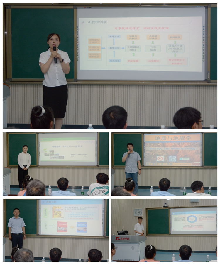 現(xiàn)場(chǎng)展示采取參賽教師5分鐘說課和15分鐘講課的方式進(jìn)行。5名參賽教師精心備賽、準(zhǔn)備充分,以PPT課件、板書等傳統(tǒng)教學(xué)方式為基礎(chǔ),深入挖掘各自課程蘊(yùn)含的思政教育元素和所承載的思政教育功能,充分展示了各自的“課程思政”理論功底和教學(xué)風(fēng)采。