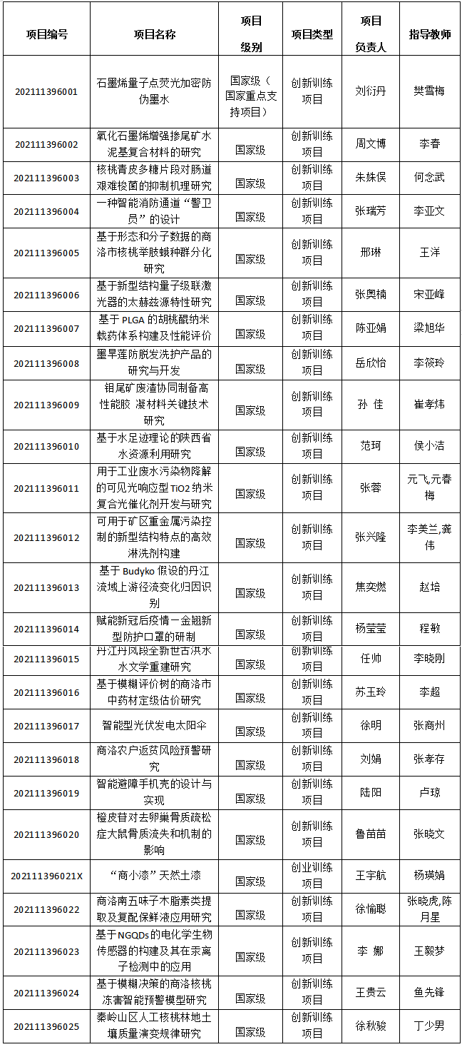 2021年國家級大學(xué)生創(chuàng)新創(chuàng)業(yè)訓(xùn)練計劃項目一覽表