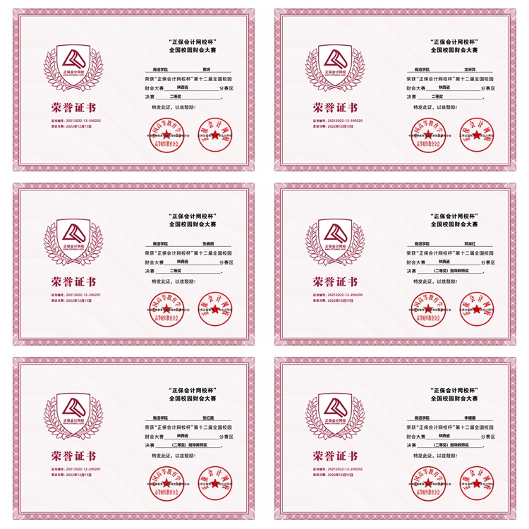 由中國高等教育學(xué)會高等財經(jīng)教育分會指導(dǎo),正保遠程教育(CDEL)主辦的“正保會計網(wǎng)校杯”第十二屆全國校園財會大賽是一項全國性大型財會專業(yè)競賽。在陜西省分賽區(qū)決賽中,我校經(jīng)濟管理學(xué)院龍宋霖、張鑫雨、黃玥3名學(xué)生榮獲省級二等獎,鄧淑紅、張紅霞、李娜娜3名教師榮獲(二等獎)指導(dǎo)教師獎。