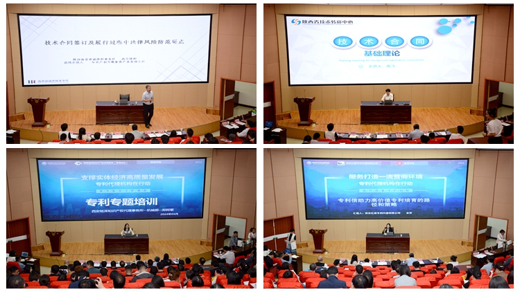 進(jìn)一步規(guī)范科研行為、引導(dǎo)師生開展有組織科研,提升學(xué)??蒲泄ぷ鞒尚?,4月25日下午,我校在圖書館二樓報(bào)告廳舉辦2024年科研工作專題培訓(xùn)暨知識(shí)產(chǎn)權(quán)宣傳周活動(dòng)。副校長(zhǎng)王新軍出席活動(dòng)并安排部署我校2024年科技工作。西安市律師協(xié)會(huì)知識(shí)產(chǎn)權(quán)委員會(huì)秘書長(zhǎng)高全,陜西省技術(shù)轉(zhuǎn)移中心工程師高飛,西安銘澤知識(shí)產(chǎn)權(quán)代理事務(wù)所高級(jí)專利代理人鄭阿黎,陜西銘一知識(shí)產(chǎn)權(quán)集團(tuán)(西安)分部商務(wù)總監(jiān)董明,西安億諾專利代理有限公司副總經(jīng)理余芳出席活動(dòng)。活動(dòng)由黨委委員、科技處處長(zhǎng)程敏主持。