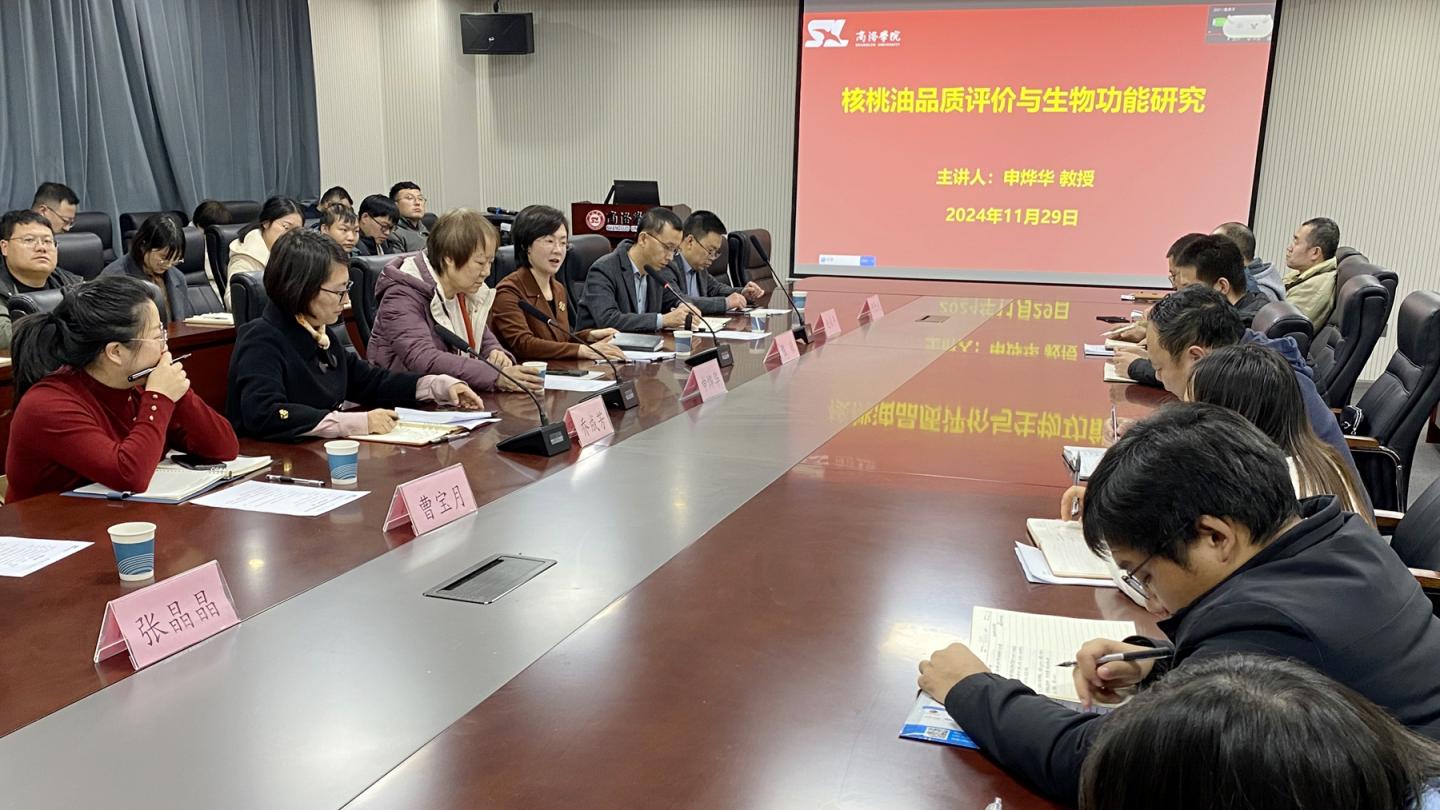在學(xué)術(shù)交流環(huán)節(jié),師生們就核桃油研究中的技術(shù)難點(diǎn)、產(chǎn)業(yè)應(yīng)用前景等問(wèn)題與申教授展開(kāi)深入交流。申教授耐心解答,其淵博的學(xué)識(shí)與嚴(yán)謹(jǐn)?shù)闹螌W(xué)態(tài)度給師生們留下了深刻印象。