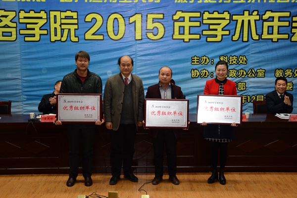 大會對榮獲2015年度陜西高??茖W技術獎的《丹江流域水土保持生態(tài)修復模式研究》課題,《魯迅小說的懺悔敘事》等49篇優(yōu)秀論文,經濟與管理學院等3個優(yōu)秀組織單位進行了表彰獎勵。校領導劉建林、范新會、王思懷、魏書堂、彭虎軍分別為受表彰的集體和個人頒獎。副校長劉寶盈主持會議開幕式和閉幕式。