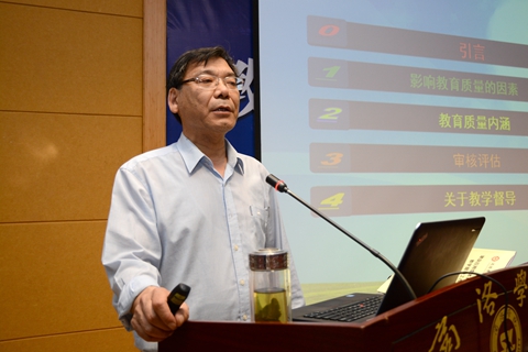 研討會上,韓江水教授作了《審核評估與教學(xué)督導(dǎo)》的主題報(bào)告。報(bào)告分析了當(dāng)前高等教育面臨的形勢與任務(wù)、內(nèi)部與外部環(huán)境、機(jī)遇與挑戰(zhàn),指出以提升教學(xué)質(zhì)量為核心的內(nèi)涵式發(fā)展已經(jīng)成為高等教育的主題,高校教育綜合改革已經(jīng)展開,地方本科高校轉(zhuǎn)型發(fā)展不斷深化。報(bào)告從影響教育質(zhì)量的因素、如何提高與保障教育質(zhì)量、審核評估、關(guān)于教學(xué)督導(dǎo)的思考四部分,進(jìn)行了詳細(xì)、系統(tǒng)地講解,分析了教學(xué)督導(dǎo)職能的變革與轉(zhuǎn)變、督導(dǎo)工作方式方法的創(chuàng)新,提出了“三督一專兩機(jī)一平”的督導(dǎo)模式。