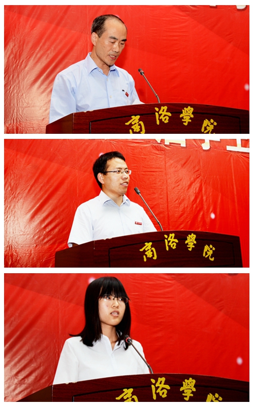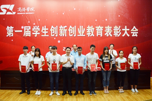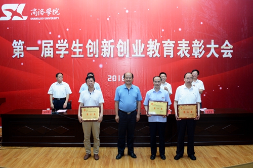 校領導劉建林、彭虎軍,教務處處長李超、學生處處長石啟英、科技處處長李繼高分別為受表彰學生及集體代表領獎。石啟英宣讀了《商洛學院關(guān)于表彰第一屆學生創(chuàng)新創(chuàng)業(yè)教育先進集體、優(yōu)勝團隊及標兵、優(yōu)秀指導教師、學生工作優(yōu)秀創(chuàng)新成果的決定》。