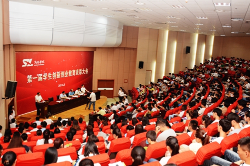 劉建林代表學校黨政對受到表彰的優(yōu)勝標兵、先進個人、優(yōu)勝團隊表示熱烈祝賀,對一年來努力拼搏的學生、辛苦付出的教師表示誠摯的敬意。劉建林指出,創(chuàng)新創(chuàng)業(yè)教育是加快學校轉(zhuǎn)型發(fā)展、發(fā)揮辦學優(yōu)勢、培養(yǎng)應用型人才的必然要求,為加快構(gòu)建“穩(wěn)基、提質(zhì)、增速,創(chuàng)新驅(qū)動發(fā)展”新常態(tài),學校將2016年確定為“創(chuàng)新年”,成立了學生創(chuàng)新創(chuàng)業(yè)教育工作領導小組,出臺了《商洛學院學生創(chuàng)新創(chuàng)業(yè)教育實施方案》《商洛學院學生創(chuàng)新創(chuàng)業(yè)教育實施細則》,在廣大師生的努力下,我校的創(chuàng)新創(chuàng)業(yè)教育工作開展卓有成效、成績斐然。