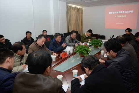 11月23日,我校召開創(chuàng)新創(chuàng)業(yè)教育改革試點(diǎn)學(xué)院建設(shè)工作推進(jìn)會(huì)。黨委副書記、副校長范新會(huì)出席會(huì)議,對進(jìn)一步理清思路,明確創(chuàng)新創(chuàng)業(yè)教育改革試點(diǎn)學(xué)院建設(shè)方向提出了具體要求。范新會(huì)強(qiáng)調(diào),要把創(chuàng)新創(chuàng)業(yè)教育和教學(xué)科研工作緊密結(jié)合,著力培養(yǎng)學(xué)生的創(chuàng)新精神、創(chuàng)業(yè)意識(shí),通過試點(diǎn)學(xué)院建設(shè)全面推動(dòng)我校創(chuàng)新創(chuàng)業(yè)教育?;膶W(xué)院相關(guān)負(fù)責(zé)人及教師代表參加了推進(jìn)會(huì)。會(huì)議由教務(wù)處處長李超主持。