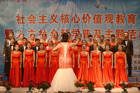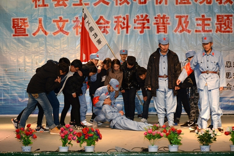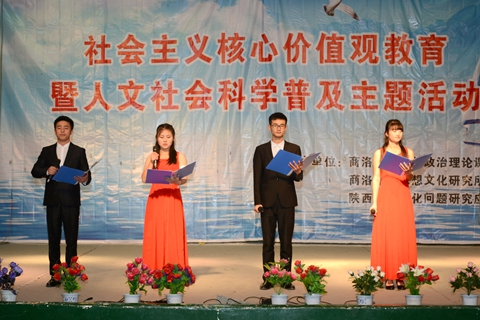 12月11日晚,由我校思想政治理論課教學(xué)研究部、商洛學(xué)院思想文化研究所、社會化問題研究應(yīng)用科普基地等部門聯(lián)合舉辦的“社會主義核心價值觀教育暨人文社會科學(xué)普及主題活動”匯報演出,在學(xué)校大學(xué)生活動中心舉行。黨委宣傳部、團委、思政部相關(guān)負責(zé)人,思政部全體教師及2016級600余名學(xué)生觀看了演出。