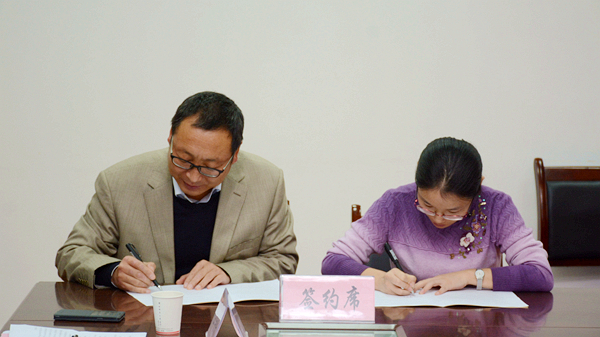 10月16日,我校與陜西科技大學(xué)舉行聯(lián)合培養(yǎng)碩士研究生簽約儀式,副校長劉寶盈和陜西科技大學(xué)研究生院副院長鮑艷分別代表雙方學(xué)校在協(xié)議書上簽字。陜西科技大學(xué)研究生院,我校教務(wù)處、化材學(xué)院、生物學(xué)院、電信學(xué)院、經(jīng)管學(xué)院相關(guān)負責(zé)人參加簽約儀式,學(xué)科辦公室副主任王學(xué)軍主持簽約儀式。