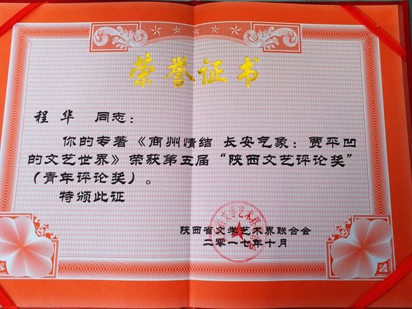 10月26日,在第五屆陜西省文藝評(píng)論頒獎(jiǎng)會(huì)上,我校人文學(xué)院程華教授專著《商州情結(jié) 長(zhǎng)安氣象:賈平凹的文藝世界》榮獲“陜西文藝評(píng)論獎(jiǎng)”。