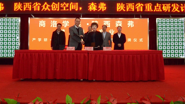 12月8日,我校與陜西森弗天然制品有限公司簽訂共建“健康養(yǎng)生產(chǎn)業(yè)產(chǎn)學(xué)研一體化示范基地”協(xié)議。陜西省委高教工委副書記李智軍,省教育廳高教處處長(zhǎng)胡海寧,商洛市委常委、副市長(zhǎng)王華,校黨委書記龍治剛,森弗天然制品有限公司董事長(zhǎng)金新康出席簽約儀式,并共同為“健康養(yǎng)生產(chǎn)業(yè)產(chǎn)學(xué)研一體化示范基地”揭牌。副校長(zhǎng)劉寶盈與森弗天然制品有限公司董事長(zhǎng)金淑俠簽訂《健康養(yǎng)生產(chǎn)業(yè)產(chǎn)學(xué)研一體化示范基地建設(shè)協(xié)議》。簽約儀式由商洛市教育局局長(zhǎng)胡棟梁主持。