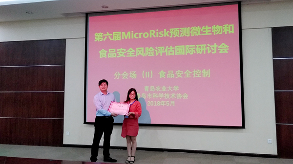 5月19日至20日,第六屆MicroRisk預(yù)測微生物和食品安全風(fēng)險評估國際研討會在山東青島舉行。我校郭耀東博士指導(dǎo)的食品科學(xué)與工程專業(yè)2014級學(xué)生韓笑參加會議并在研究生論壇上以《陜西肉雞制品全產(chǎn)業(yè)鏈中沙門氏菌的分離鑒定階段性研究》為題作了學(xué)術(shù)報告。經(jīng)過專家評審,韓笑榮獲本次大會研究生論壇學(xué)術(shù)報告三等獎。